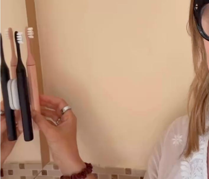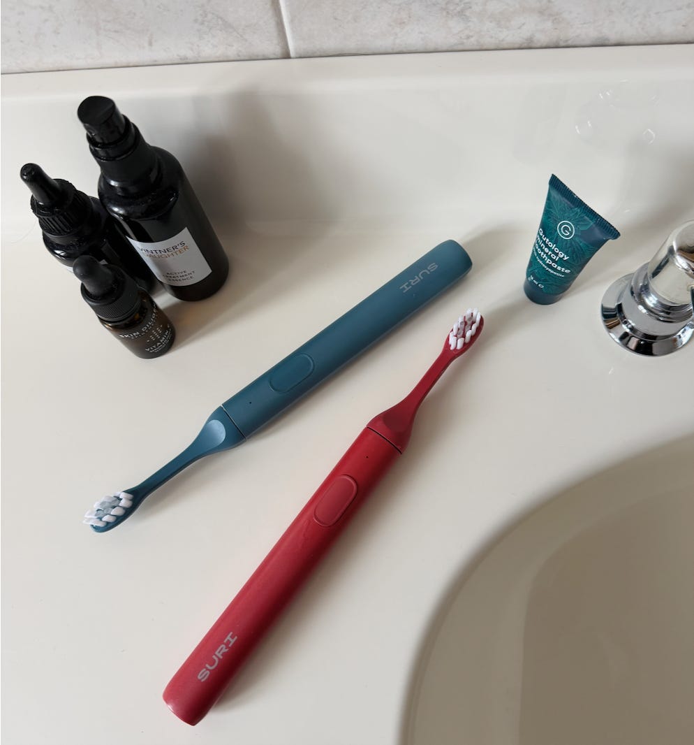 I got wildly excited about the SURI brush back then, and bought one for my teenage son too. The mirror magnet mount was my favourite thing, but the lack of mess and then the marble-shine teeth feeling were the things that made me tell everyone.